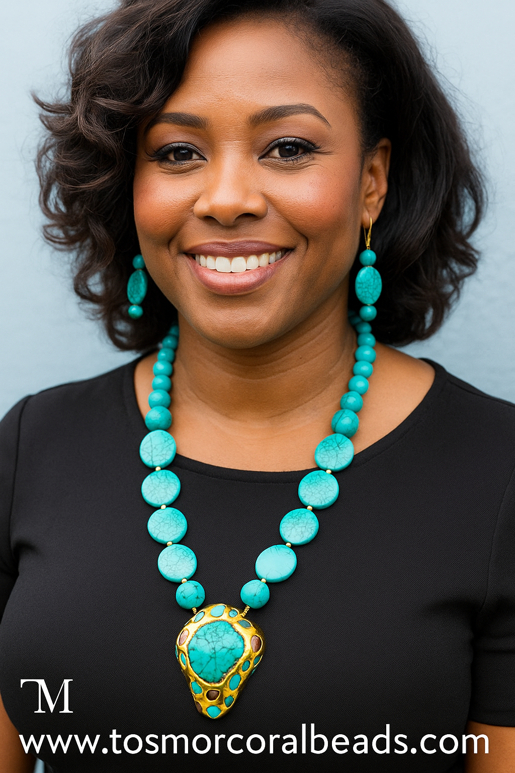 Lovely and Bold designer turquoise necklace. Natural blue larimar love shaped pendant .Absolutely stunning !