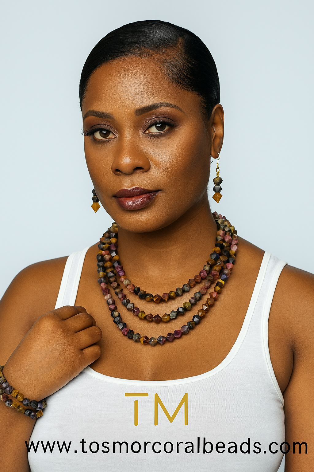 Natural round Picasso unique Necklace Choler Opera 3 Layer 18,20,22. You can wear in in different style.