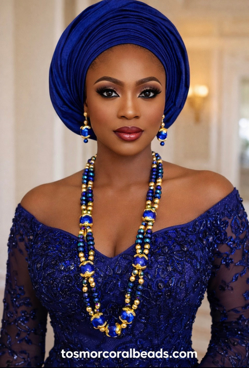 At Tosmor Coral Beads, we don't just sell jewelry-we create statement pieces that tell your story beautifully. This rich, vibrant Blue Murano Glass bead is perfect for a Nigerian bride & any special celebrations.